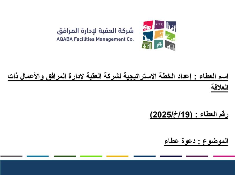 إعداد الخطة الاستراتيجية لشركة العقبة لإدارة المرافق والأعمال ذات العلاقة رقم : (19/خ/2025)