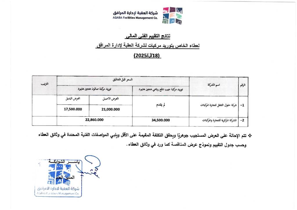 عطاء توريد مركبات لشركة العقبة لإدارة المرافق (18/ل/2025)September 30, 20250CommentsClientClient nameYear2025AuthorAuthor nameShareTwitter-newFacebookShare-emailCopy URL to clipboard