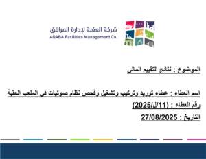 نتائج التقييم الفني المالي لعطاء توريد وتركيب وتشغيل وفحص نظام صوتيات في ملعب العقبة (11/ل/2025) Read More » September 14, 2025